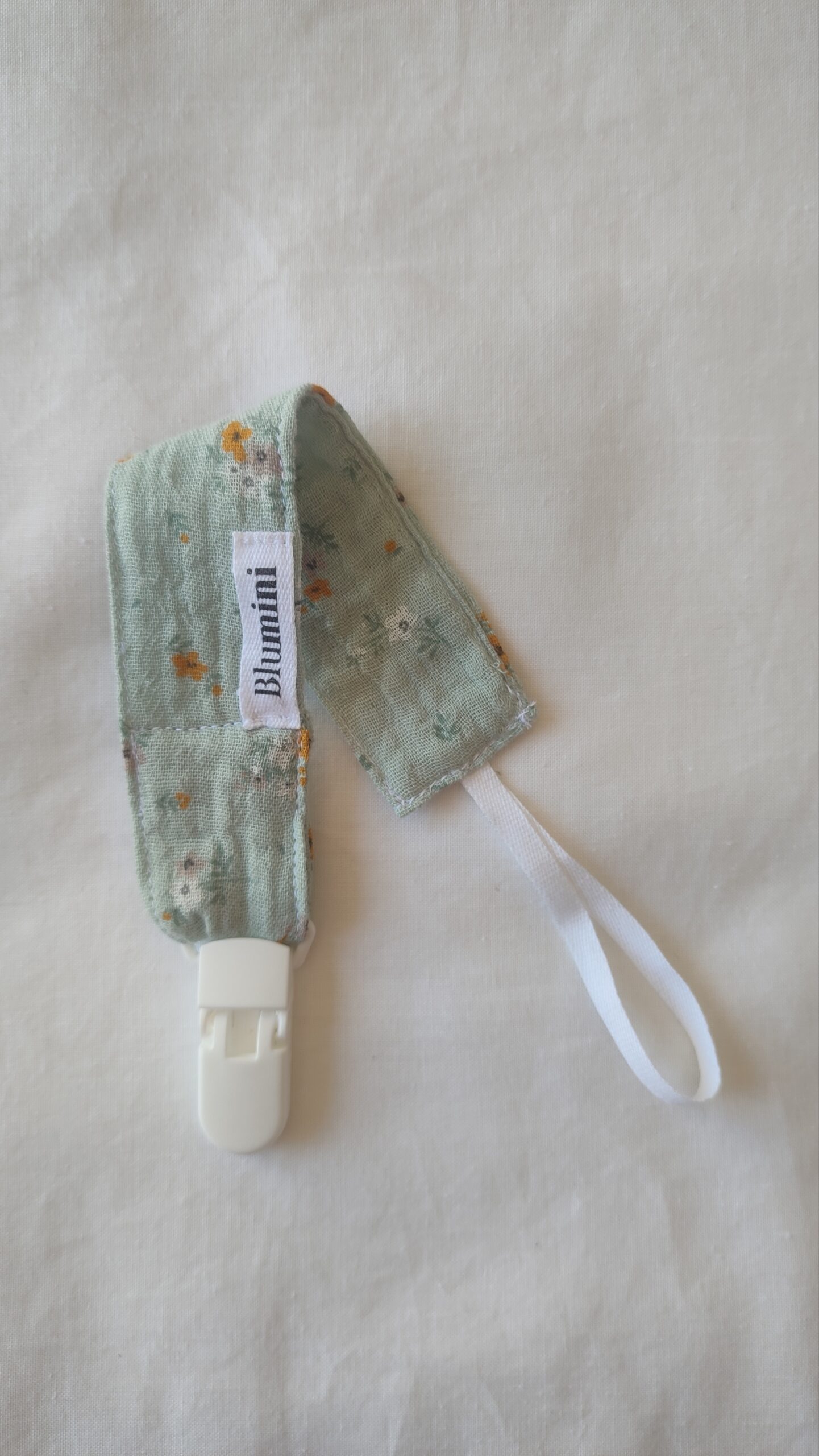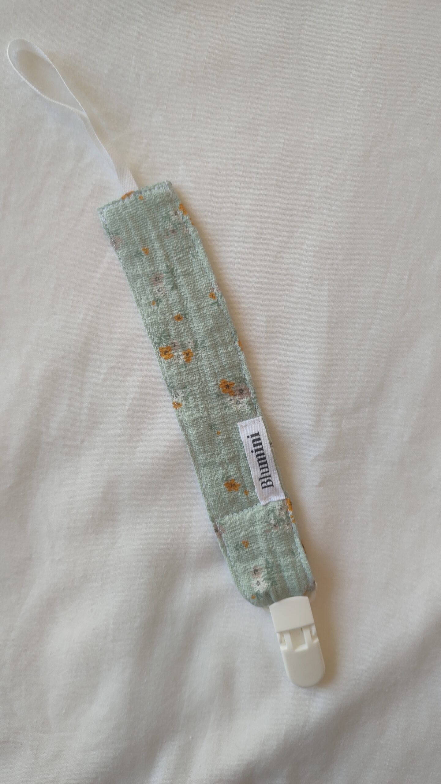 Chupetero de la colección Campiña con pinza blanca de plástico.